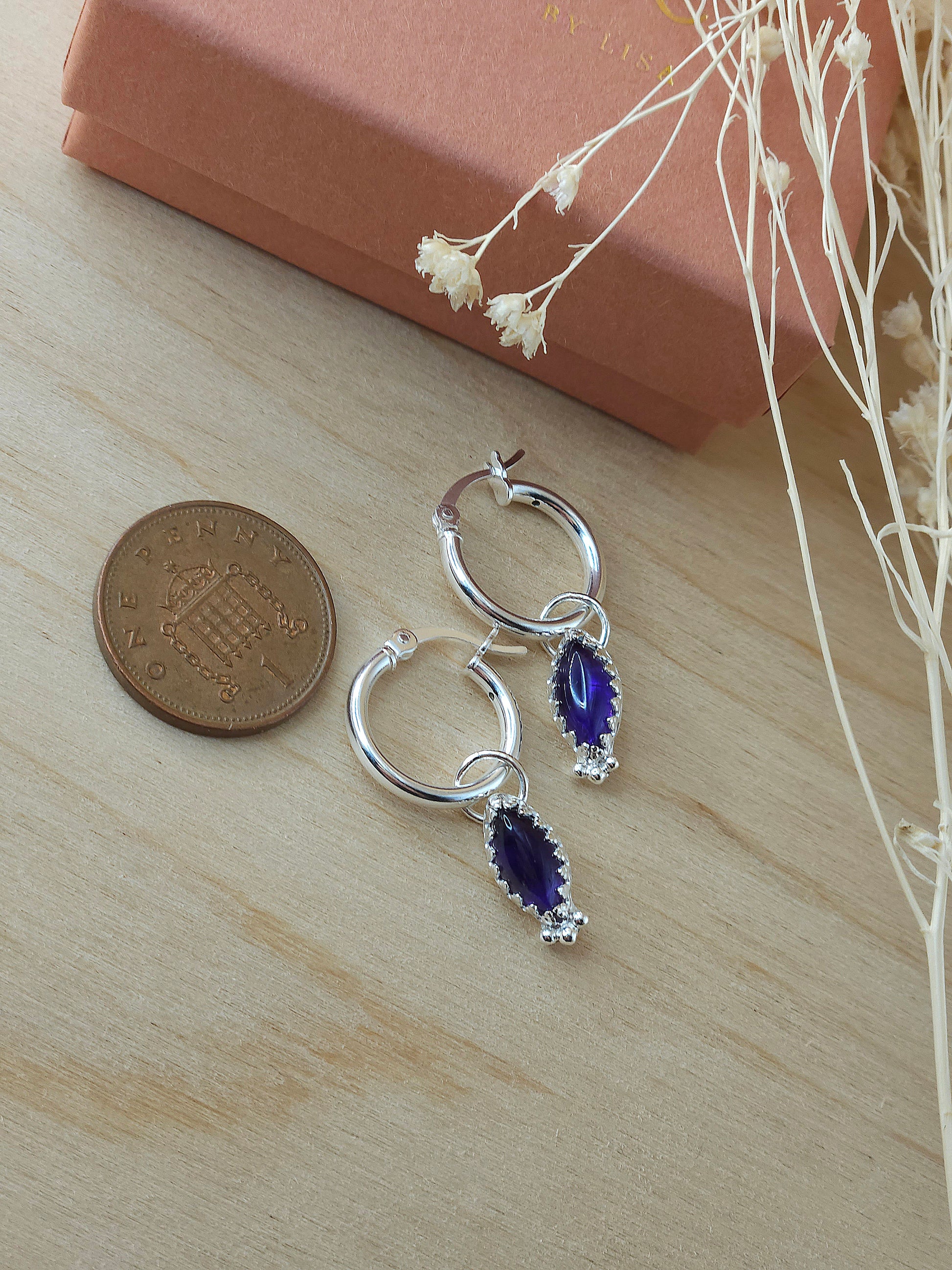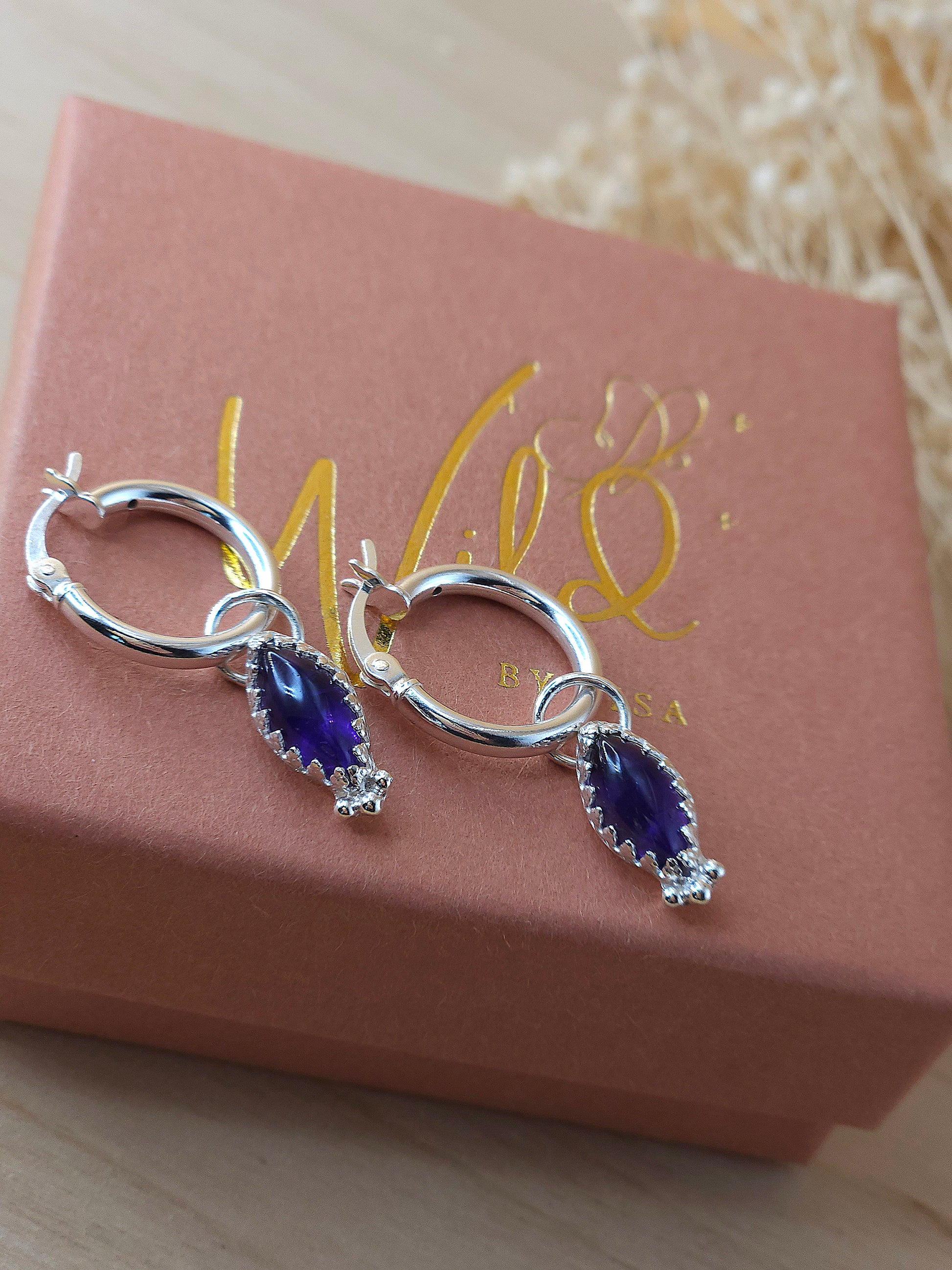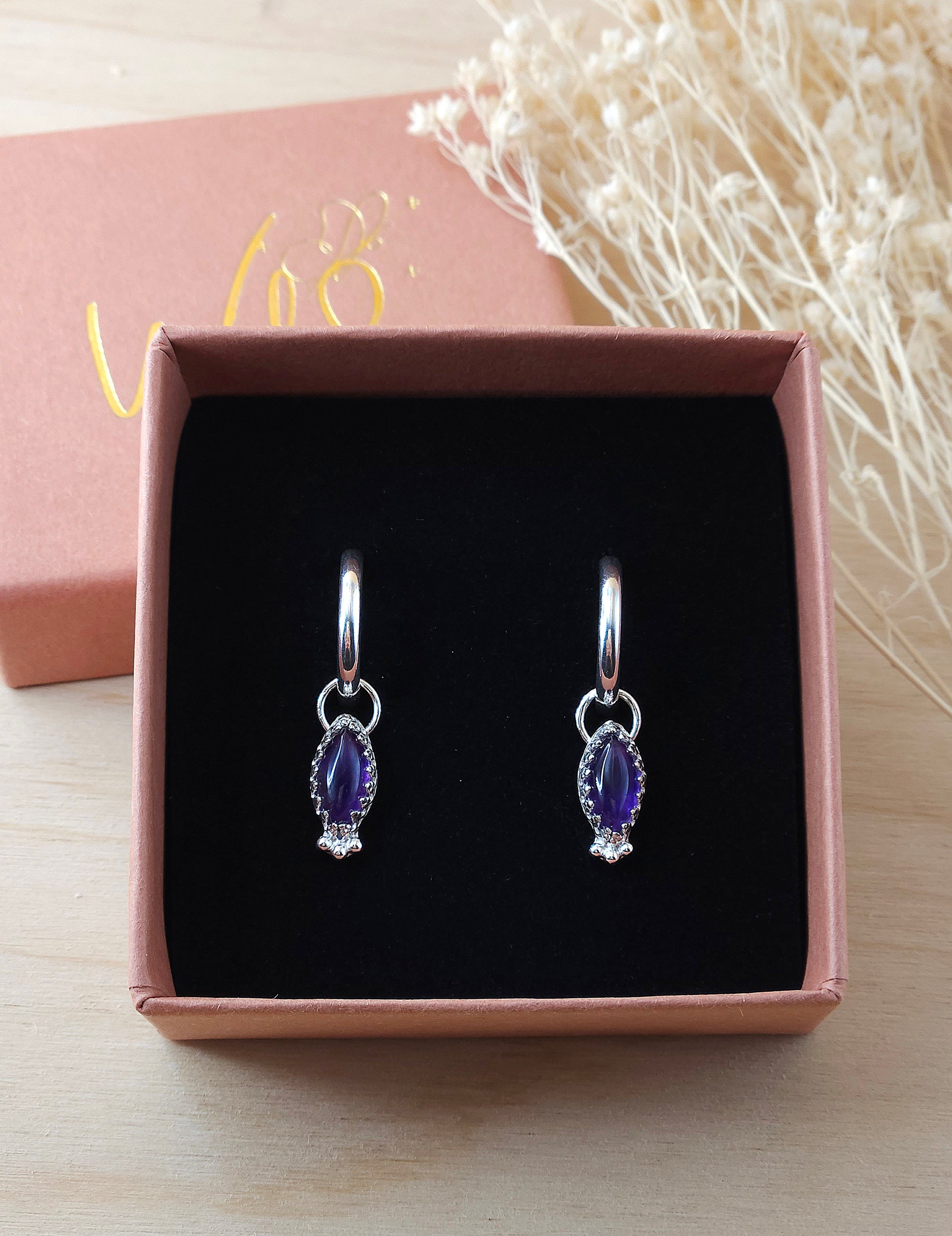 A lovely pair of silver mini hoops with an Amethyst charm. Perfect for any occasion; pair with a casual outfit for a little bit of sparkle or with a gorgeous dress for an evening out. Amethyst is the birthstone for February and would make a lovely gift!
