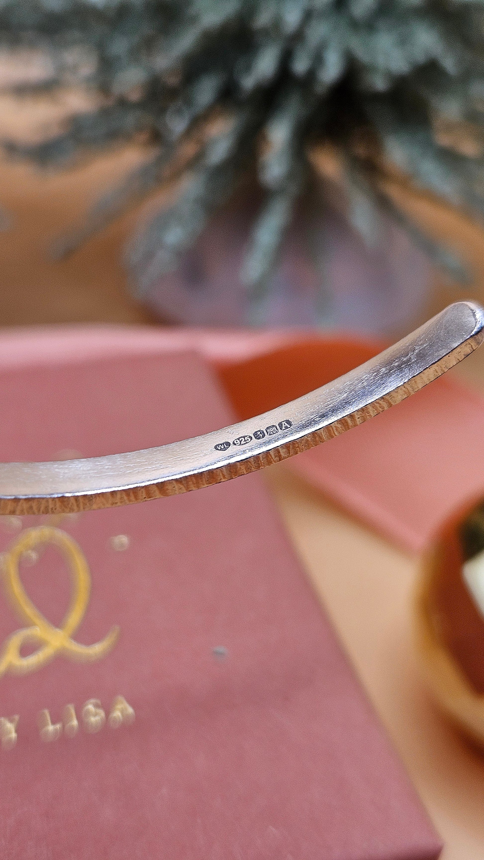 Sterling silver cuff bangle with seashells and a natural Aquamarine gemstone.