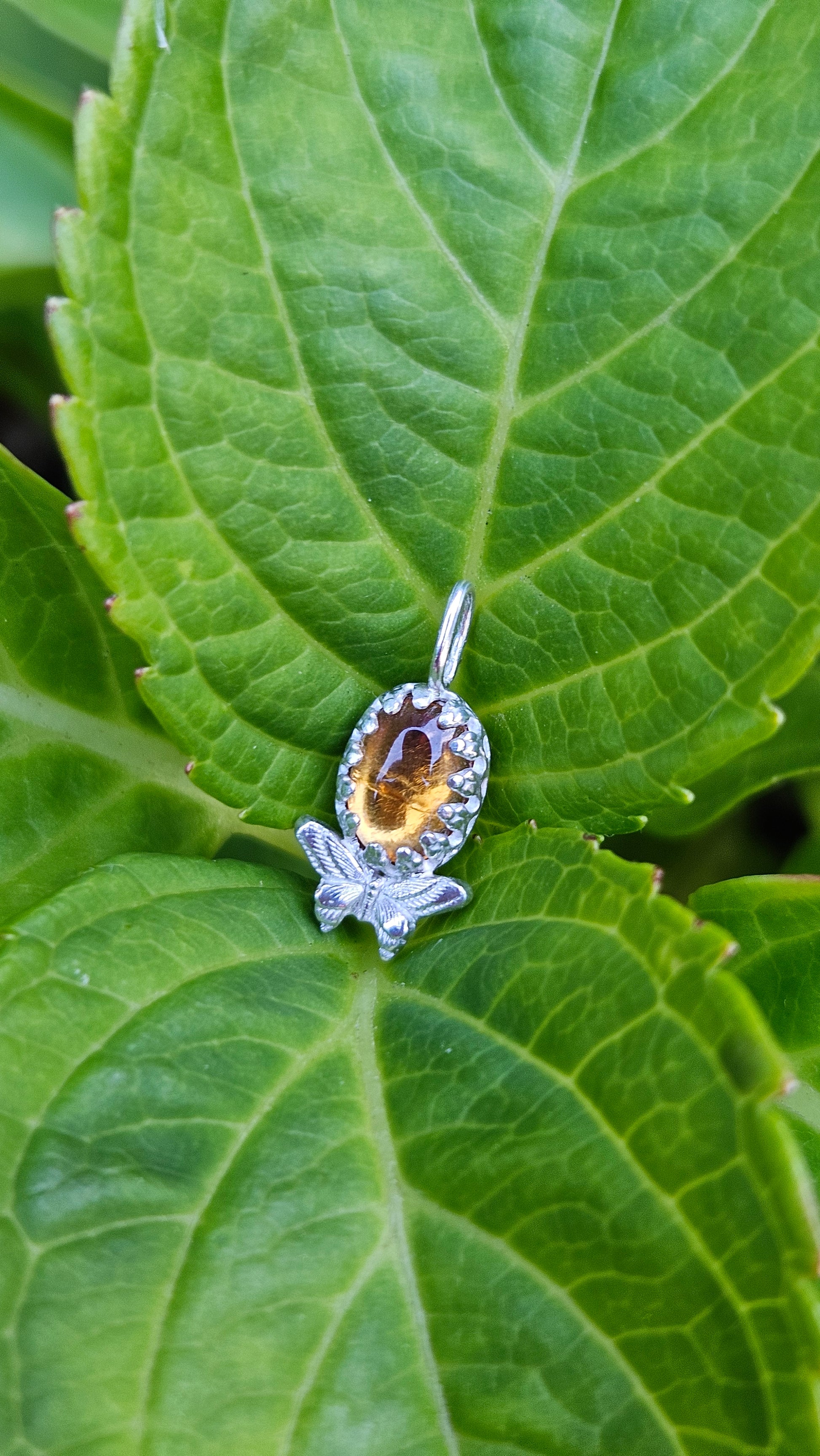 A dainty butterfly pendant featuring a natural golden Tourmaline gemstone. Part of the Butterfly Gem collection. This would be the perfect gift for anyone who needs a little bit of magic in their life.
