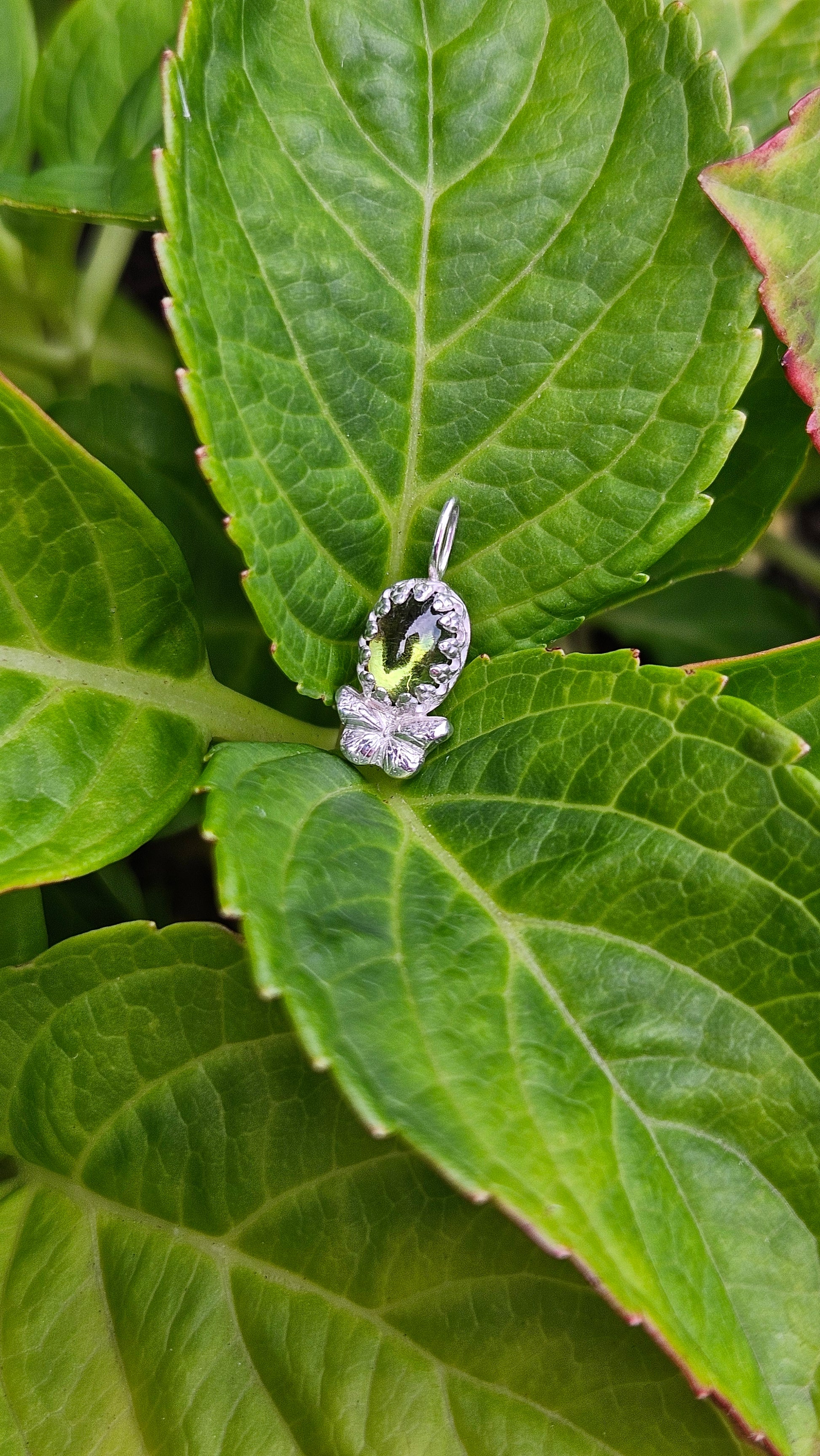 A dainty butterfly pendant featuring a natural green Tourmaline gemstone. Part of the Butterfly Gem collection. This would be the perfect gift for anyone who needs a little bit of magic in their life.