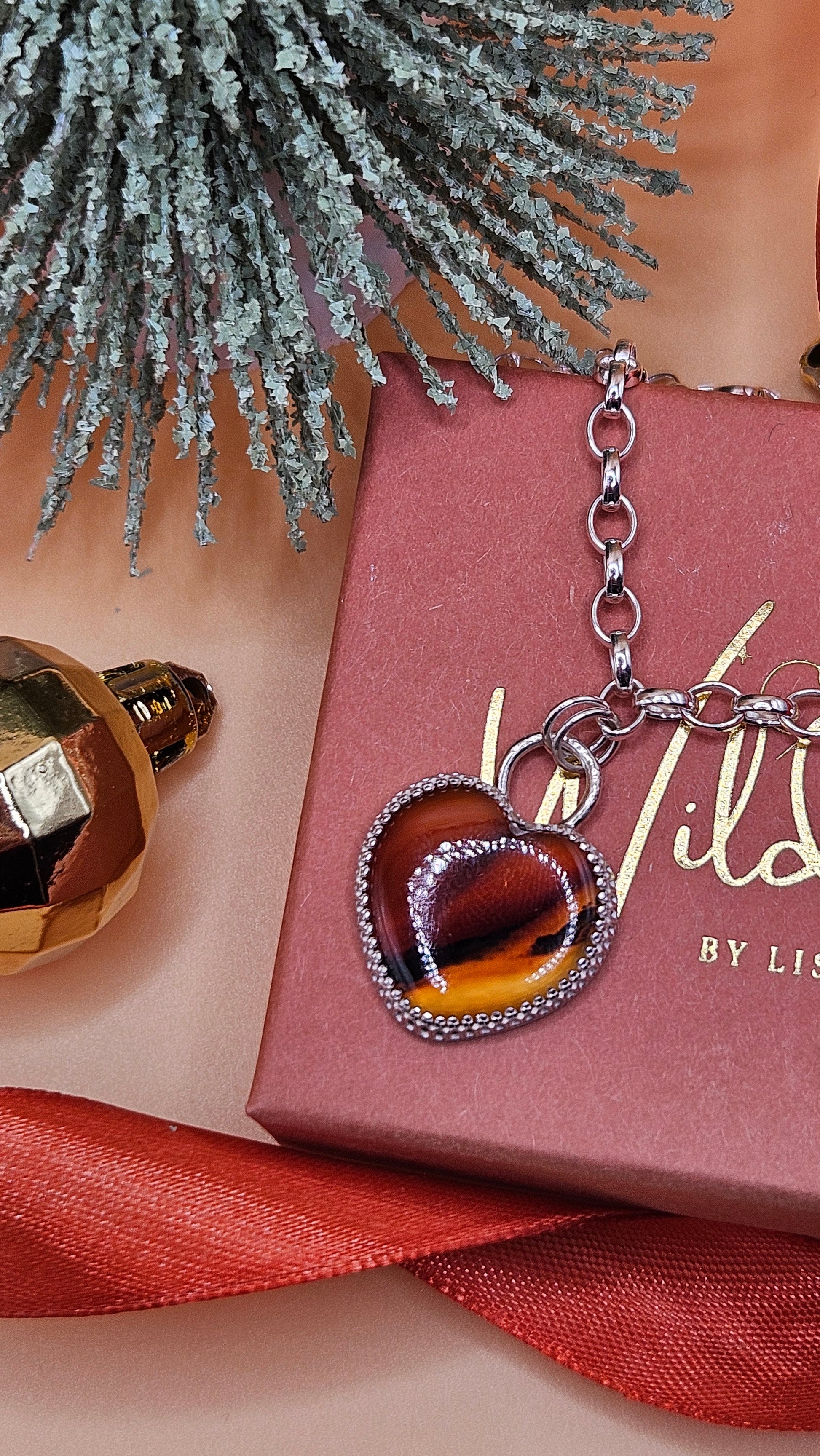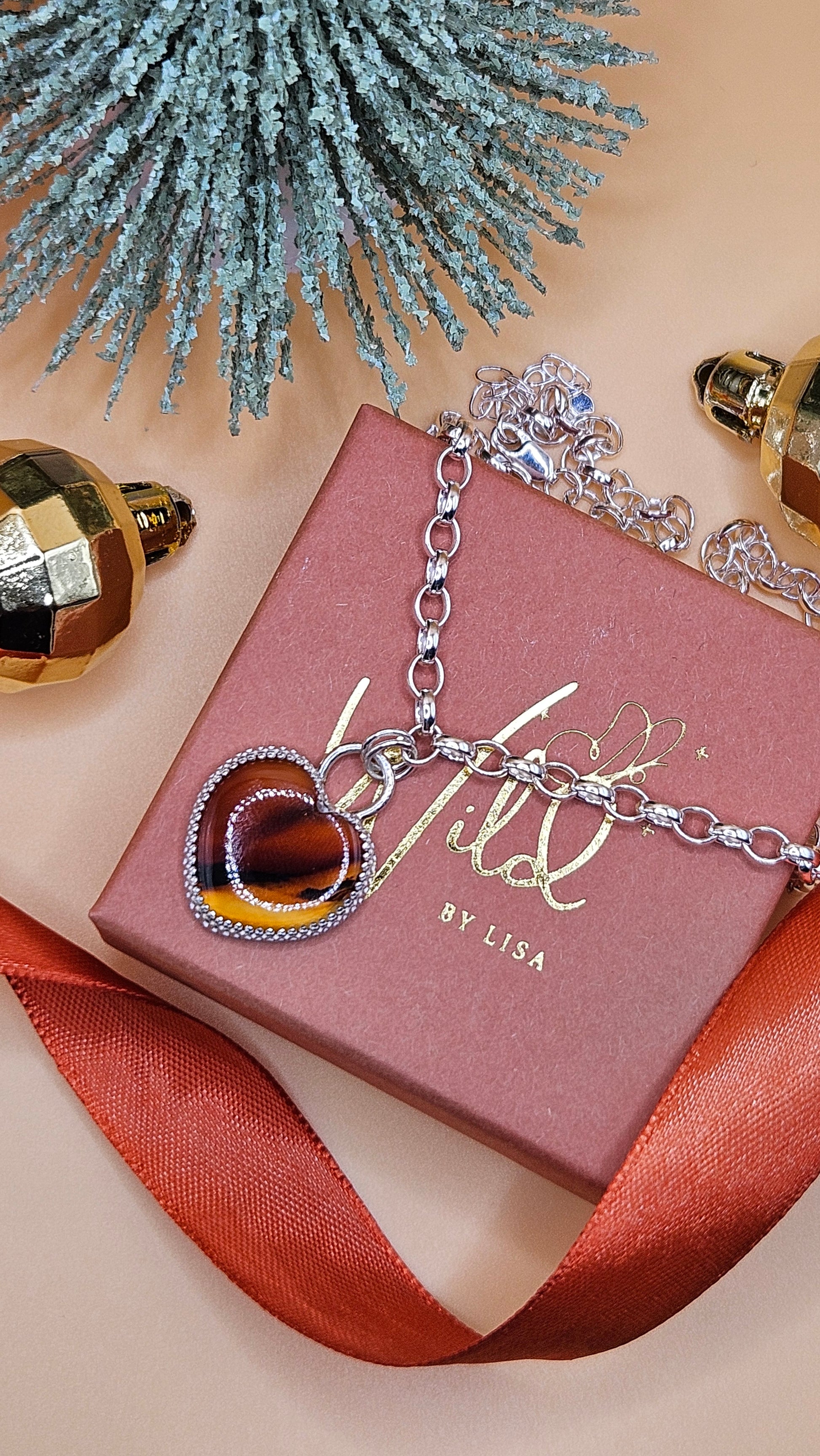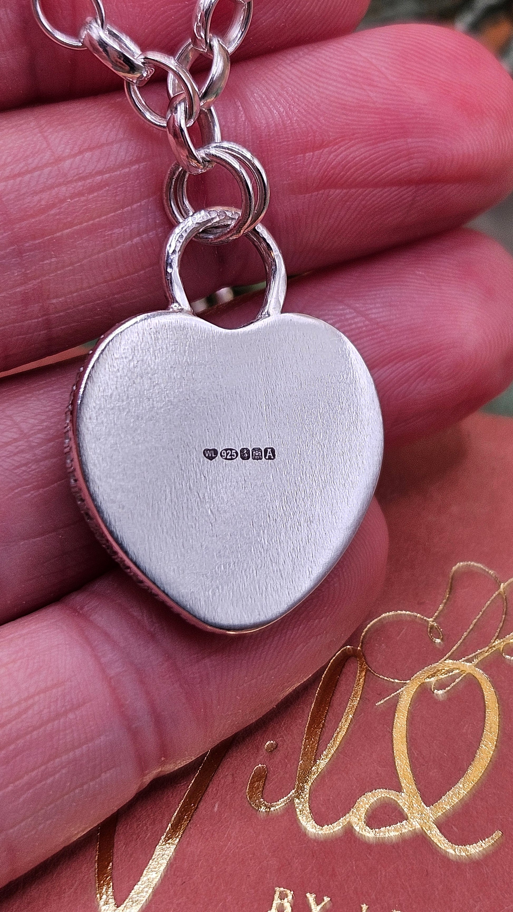 Sterling silver choker necklace featuring a gorgeous heart-shaped Montana Agate gemstone.