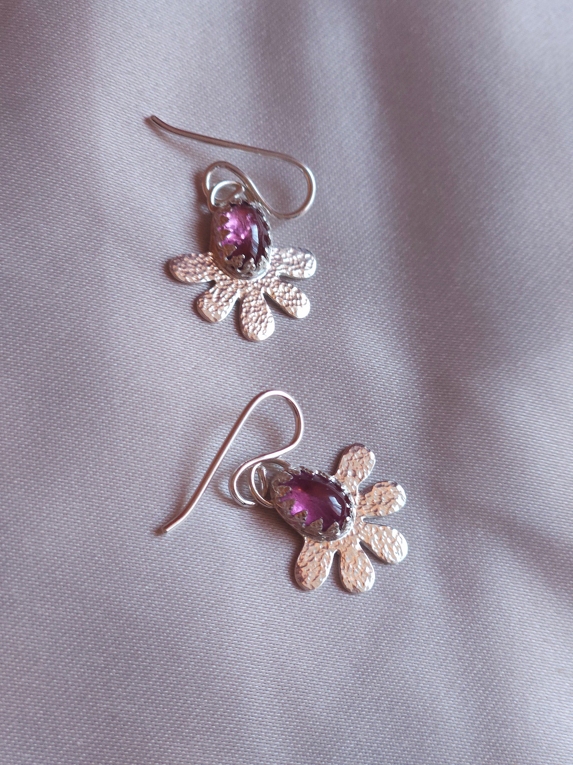 A gorgeous pair of Pink Tourmaline flower earrings with a hammered texture. These would make the perfect gift for Mother's Day!