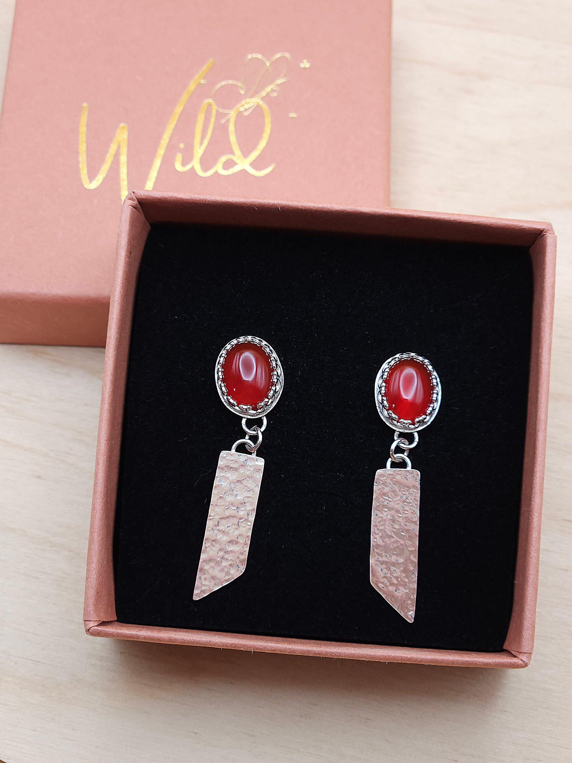 A pair of Carnelian hammered drop earrings with butterfly backings.